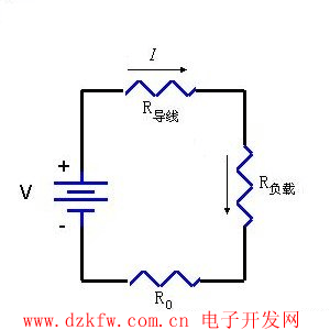 ,如图二所示。当导线较长时,导线电阻与负载电阻和电源内阻相比,就不能忽略不计了。这时回路电流就与回路总电阻