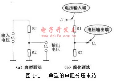 图1-2是带有负载的电阻分压电路,电路中的RL是负载电路,他可以是一个电阻也可以是一个电路。