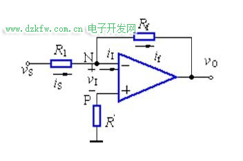 由于电路存在虚短,运放的净输入电压vi=0,反相端为虚地。