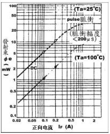 红外线发光二极管的发射束大体上也是随电流比例而定,如图2所示,为发射束