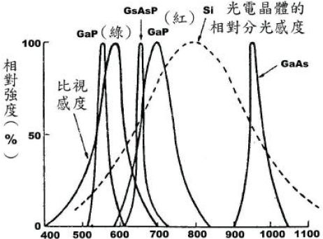 不能看到的原因。图中虚线部分,是Si质光电晶体的相对分光感度,光电晶体的