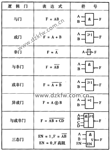 门电路是一种用电脉冲控制的开关电路,具有一个或几个输入端和一个输出端。它规定各个输入信号之间满足某种逻辑关系时,才有信号输出。门电路的输入端或输出端只有两种状态,无信号以“0”表示,有信号以“1”表示。常用的门电路在逻辑功能上有与门、或门、非门、与非门、或非门、与或非门、异或门等几种。