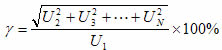 式中U1为基波分量电压有效值。U2,U3,…,UN分别为二次、三次……N次谐波分量电压有效值。