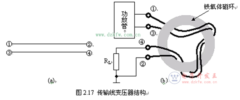 ①传输线变压器既是功放电路的负载,同时又起着将高频信号传输到下一级的作用。