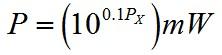 也可以根据功率电平值求出电路的绝对功率值,以dBm为例,设一功放电路的功率电平等于Px(单位dBm),则其绝对功率P等于
