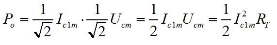 放大电路信号输出功率等于集电极信号电流有效值与集电极信号有效值的乘积,可以求得输出功率Po为