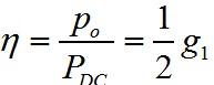功率放大电路的效率η等于输出功率Po和直流电源供给功率PDC之比,即