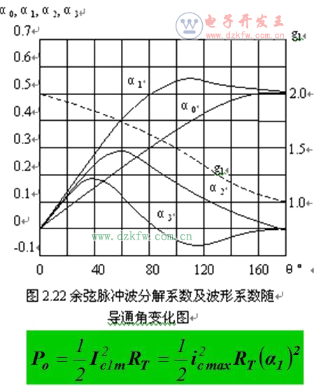 为了计算上述C类LC谐振功放的输出功率和效率,需要求出基波分量ic的峰值Ic1m。