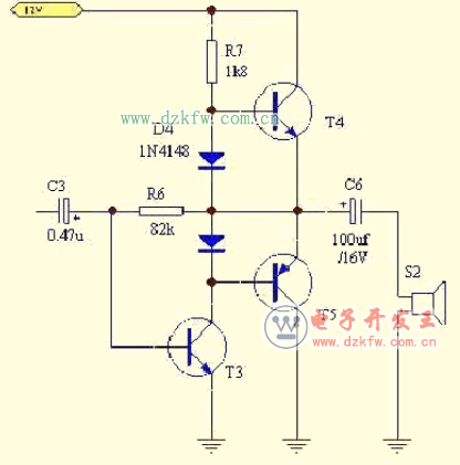 简易大功率功放电路图二:三个三极管组成的功放