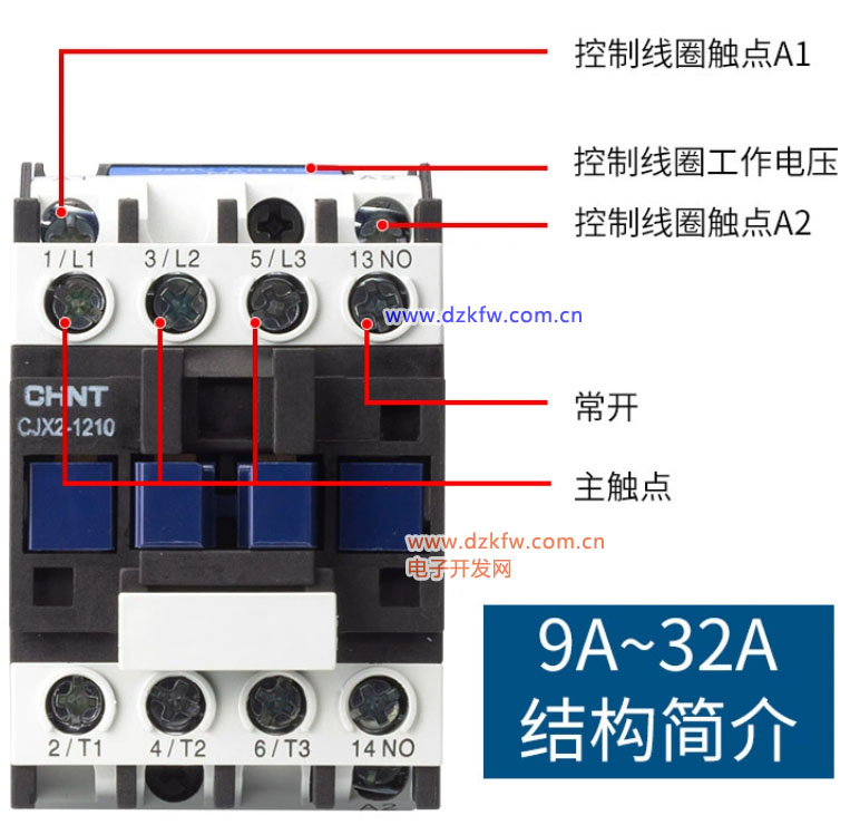上图就是接触器,由线圈和触点组成,线圈和触点是相关联的,线圈通电,触点动作,线圈断电,触点恢复常态。