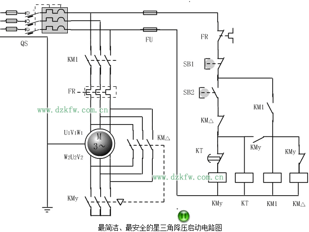 1、这是我给大家的一个星三角降压启动电路图,是最简洁、最安全的电路图!