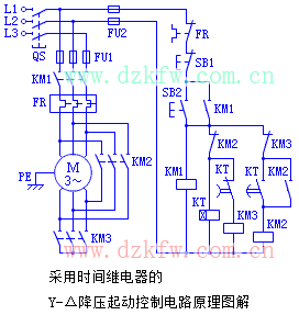 在电机Y—Δ起动过程中,绕组的自动切换由时间继电器KT延时动作来控制。这种控制方式称为按时间原则控制,它在机床自动控制中得到广泛应用。KT延时的长短应根据起动过程所需时间来整定。