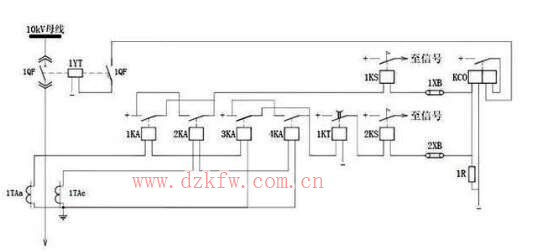 如图1 所示为10kV线路保护集中式二次原理图。从中可以看出:该10kV线路设置含有电流速断保护和过电流保护的两段式电流保护。