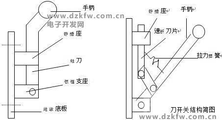 图1 手柄操作式单极开关 图2 带速断刀片的刀开关