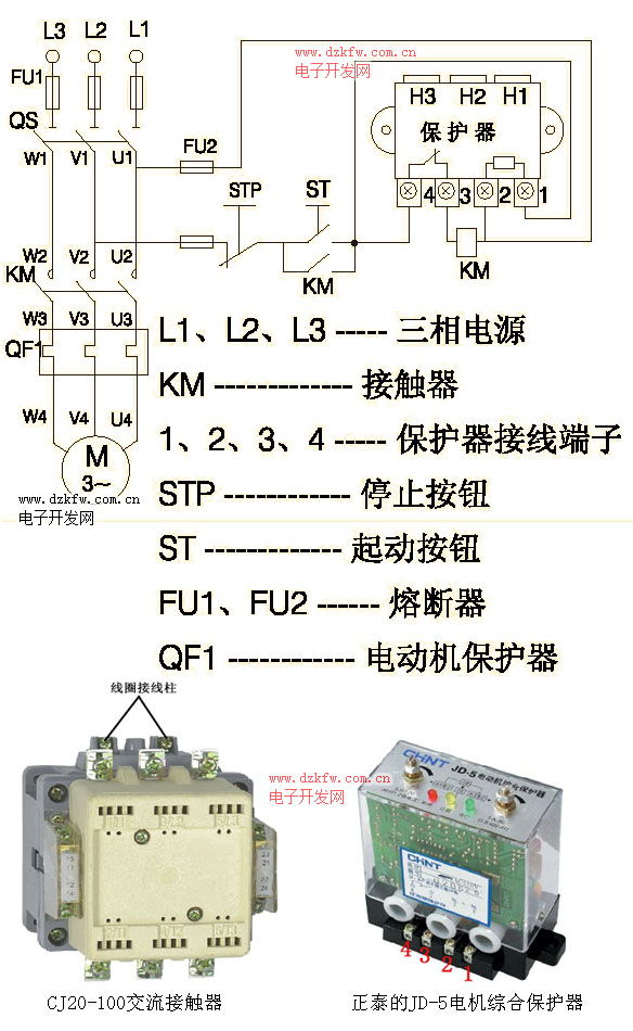 买了正泰的CJ20-100交流接触器,和正泰的JD-5电机综合保护器,可是不会接线,看厂家的保护器里的接线图,一头雾水,不懂如何接,求高人指点