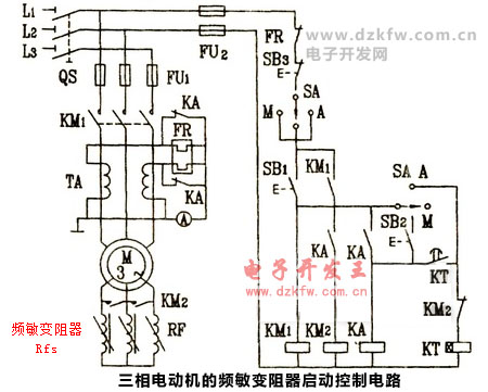应用频敏变阻器启动线绕转子异步电动机的控制线路如下图所示,其启动过程如下:先合上电源开关QS后: