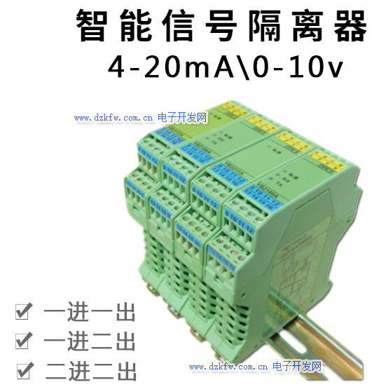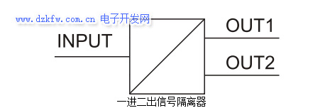 第三个作用就是信号分配功能在某些场合需要将一个信号传输到不同的控制系统DCS和显示器,这时就需要加一个信号隔离器,起到分配功能,如一入二出,一入三出,一入四出。