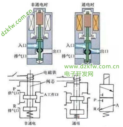 有关气动电磁阀的使用知识,气动电磁阀通过控制阀体的移动来挡住或漏出不同的排油孔,进油孔常开,液压油进入不同的排油管,通过气动电磁阀的油的压力来推动油缸中的活塞。