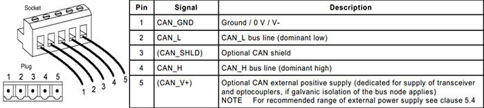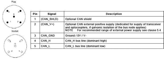 图3是M12形式的接口定义,在这里可能没有什么特别需要注意的点,还有就是除了5pin的接口还有8pin、9pin、10pin和12pin的接口,具体的定义不在赘述,可参考标准CIA 303_1。