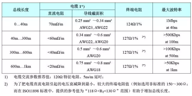 其次就是终端电阻对总线的影响,不能只记着120欧的终端电阻,也应该根据不同长度和电缆的选择合理配。