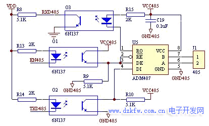 (2)使用二次集成芯片,如ADM2483、ADM257E等。