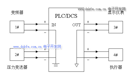 有时现场仪表在配套时,由于协调不利,产生了如下情况:接收设备(如某些DCS输入卡键)的信号接入端带有24V电源(即我们常说的两线制接口),而现场为4线制变送器,输出信号为有源信号,因此,来自于现场的4线制变送器输出信号与来自于接收装置的两线制电源信号就会发生冲突。