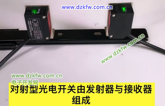 对射式光电开关是由发射器和接收器组成,其工作原理是:通过发射器发出的光线直接进入接收器,当被检测物体经过发射器和接收器之间阻断光线时,光电开关就产生开关信号。它与反射式光电开关不同之处在于,前者是通过电-光-电的转换,而后者是通过介质完成。