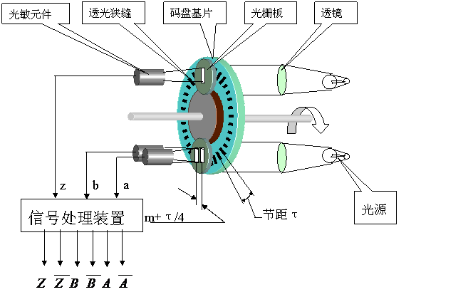 它主要由光源、码盘、光学系统及电路4部分组成。那下面我们根据不同种类的光电编码器进行说明。