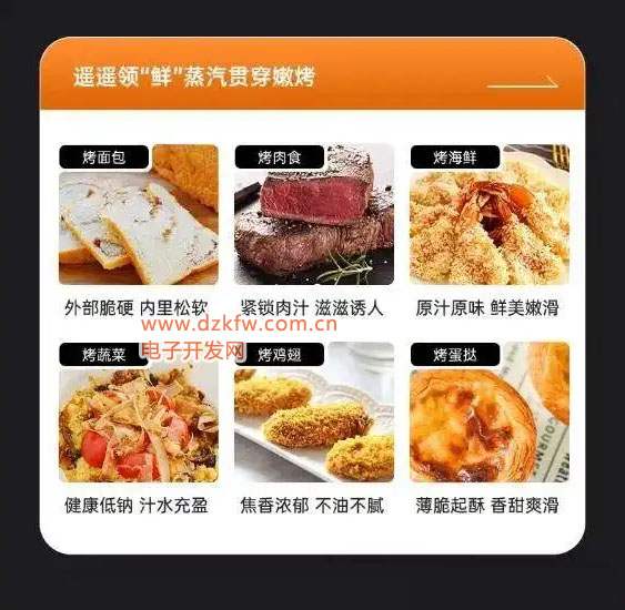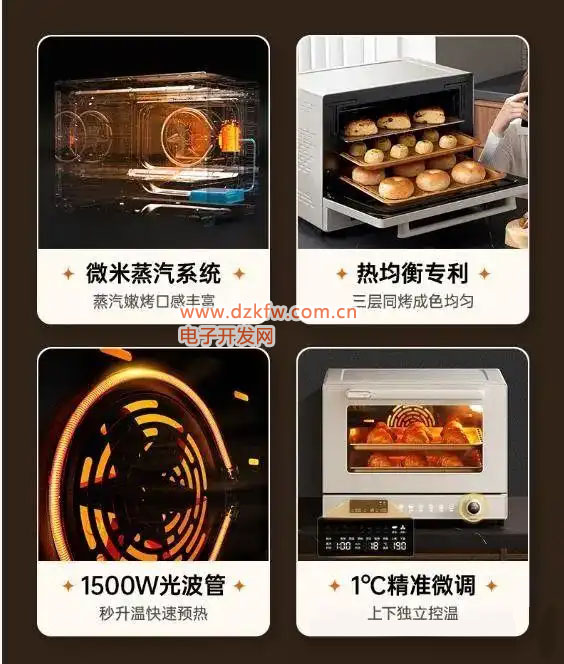 特点:内部温度均匀,能在高温下将食材内外都烤熟,适合多种烹饪方式,如烘焙、烤制、加热、解冻等。