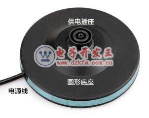 1.分离式底座,由圆形底座、电源插座、电源线组成;关于电源线的长度是有国标规定的,这是出于安全考虑的。它的作用是供电、承重,设计为母头,这样的设计是为了防止误触摸插座而发生触电事故;