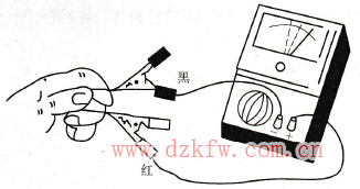 1) PTC(正温度系数)热敏电阻的常温检测:具体作法如图4-15所示,将两表笔接触PTC热敏电阻的两引脚,测出实际阻值,并与标称阻值相对比,两者相差在±2Ω内即为正常。实际阻值若与标称阻值相差过大,则说明其性能不良或已损坏。