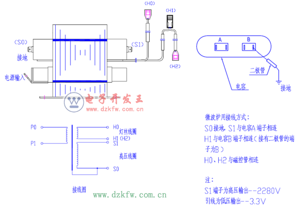 的2个接线端子,一端接高压变压器的高压输出端,另-端接到磁控管的高压输入端