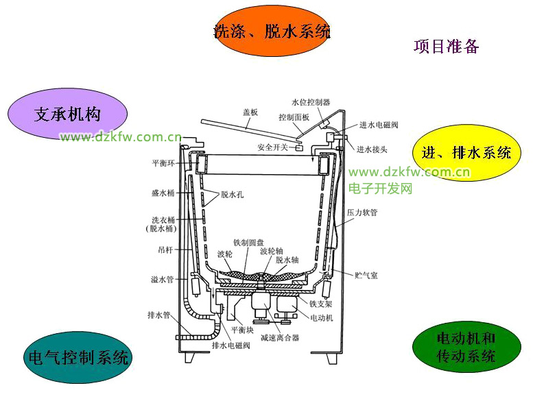 组成:主要包含水位开关、进水电磁阀、排水电磁阀等