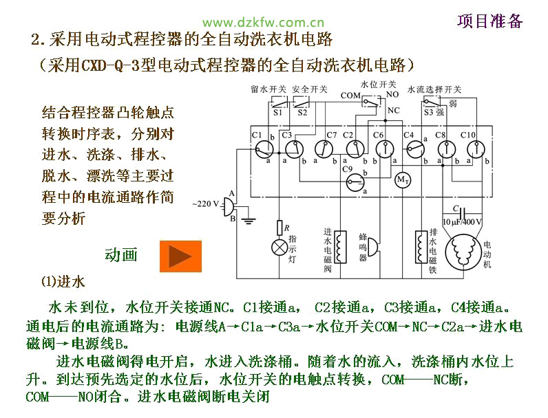 同时,动合触点COM-NO闭合——这一信号输入程序控制器——控制洗衣机进入下一个过程