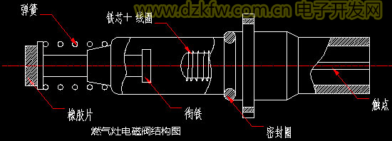 离子熄火保电磁阀的体积是较大的,在燃气管的末端,连接万向节处,当我们按压旋钮的时候,触动微动开关,脉冲点火器检测到了以后,吸合电磁阀阀,当产生熄火的时候,首先被离子熄保检测到没有电流通过,脉冲点火器做出反应,并开始倒计时,如果是因风力过大造成的偏焰会在几秒钟之内火焰回到正常状态,熄火的话就会在倒计时内还没有电流通过,那么单片机做出反应,并断开电磁阀电流,从而关闭了燃气,避免了事故。