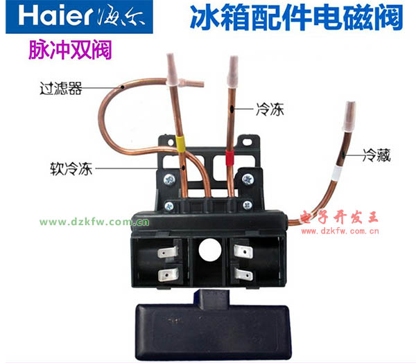 (1 )用万用表测电磁阀插头处有无220交流电压;(2)检测驱动板保险丝是否烧坏;(3)检测驱动板上的电容是否击穿、漏电;(4)检测电磁阀线圈是否有9.6K的阻值。2 双稳定态电磁阀的检修:(1)用万用表检测电磁阀线圈阻值约在2K以上(其阻值根据各冰箱厂家要求有所不同);(2)用万用表检测脉冲电压, 可将万用表功能旋钮调到直流档50V,用黑表笔接触N线,红表笔接触主板给电磁阀输出信号端, 正常情况下,第15秒(视各厂冰箱而定,但是基本上都在此范围内)主板会给电磁阀一个维持脉冲信号器(脉冲信号输出的长短,取决于主板的设计程序)。信号输出时,万用表指针会向左摆一下,持续时间约定秒。若表针不动,说明主板有故障,而非电磁阀自身故障。