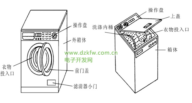 一种是前装式洗衣机,另一种是顶装式洗衣机。外形分别如图所示。