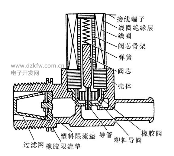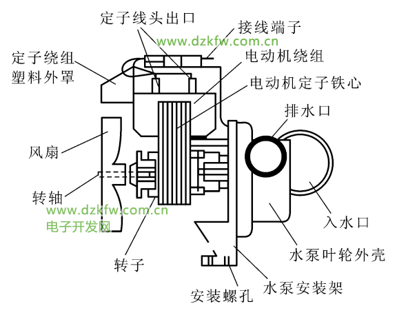 上排水,采用排水泵排水。单相罩极电动机驱动,图是它的结构示意图。