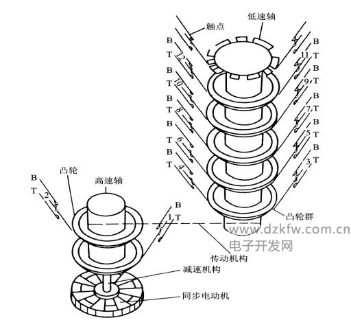结构和工作原理与第十一章介绍的波轮式全自动洗衣机上使用的同类程序控制器是类似,外形如图所示。