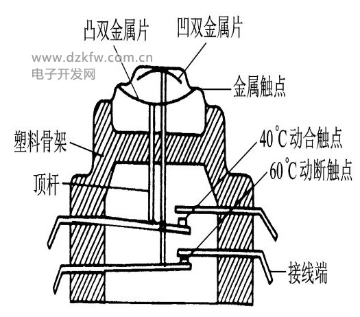 滚筒式洗衣机多采用碟形双金属定值型温控器。它的结构如图所示。