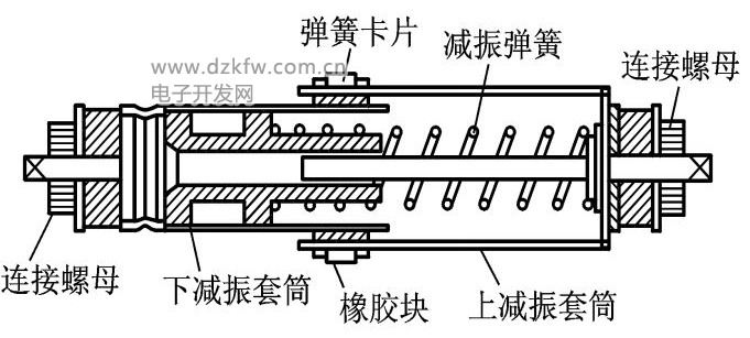 组成:吊装弹簧、弹性支承减振器、外箱体及底脚等。整个机芯采用弹性支承,如图所示。