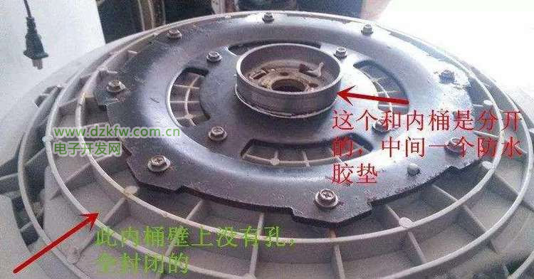 检查脱水桶是否漏水。如果是脱水桶漏水,可能是脱水轴波轮橡胶套内密封圈损坏或密封不严或者波轮橡胶套老化。我们只需要更换密封圈就可以修复。