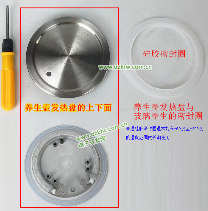 那么问题来了:半玻璃壶身+金属发热盘+硅胶密封圈的壶体组合,还能否起到“养生”的作用吗?