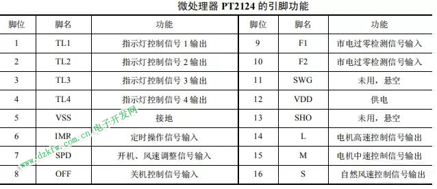 (1)PT2124 的引脚功能微处理器 PT2124 的引脚功能如下表所示。