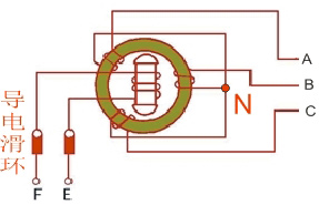 (1)转子线圈必须通电产生磁场:通过F和E接柱为转子线圈供电,转子线圈通电产生磁场;