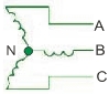 三相绕组的星形接法: