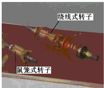 (1)鼠笼式转子:若去掉转子铁心,整个绕组的外形像一个鼠笼,故称笼型绕组。小型笼型电动机采用铸铝转子绕组,对于100KW以上的电动机采用铜条和铜端环焊接而成。如图1-6所示。