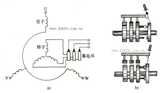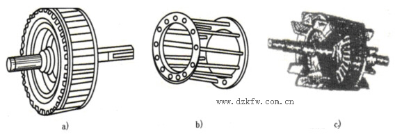 a)笼型绕组 b) 转子外形 c) 铸铝笼型转子