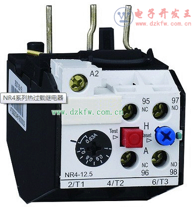蓝色这个叫复位按钮,上面有"H"和"A"两个刻度,H是手动,A是自动;所谓的手动H,就是过载保护后产品不会自动复位(不恢复正常状态,保持动作动作状态);所谓的自动A就是过载保护后,产品动作,过一段时间冷却后又恢复到原始状态。