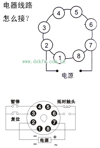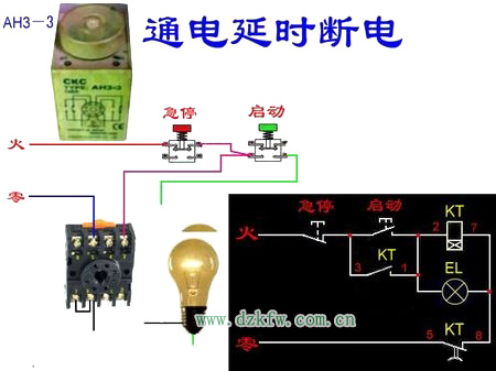 把你需要延时通电的设备接到9-5或12-8就可以了。比如你要把一个灯泡延时点亮,那你先把零线直接与灯泡连接,火线接在9或12端子上,再把5或8连接到灯泡上就好了。